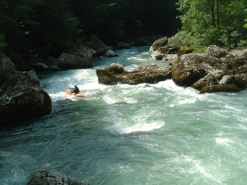 - Du Pont du Vivier (ou de St Ponce ?) à Samoëns : la partie classique du Giffre, exploitée par deux ou trois boîtes de raft (très sympa). Avec le fameux passage par les très verticales, très étroites et non moins fameuses gorges de Tines (raft, via-ferrata, parking, tout le monde en profite, de ces gorges). On peut se contenter de partir de Sixt (embarquement à la base de raft côté amont de Sixt). Le débarquement se fait à Samoëns juste après le pont sur lequel passe la RD (juste après être passés sous le téléphérique). II/III (passage 4 créé par un barrage peu avant les gorges de Tines, qui peut être porté si on le voit à temps). On peut parait-il continuer ensuite jusqu'au barrage de Taninges, mais ils campaient à Samoëns et en avaient assez fait pour une journée commencée à 5:00 ou 6:00